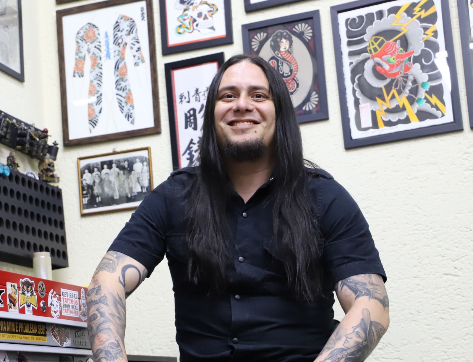 Cayo Farias é tatuador profissional há mais de 15 anos e a sua história com a arte começou na infância, já que desenha desde criança. Ao longo dos anos foi desenvolvendo seu próprio estilo dentro de suas técnicas de tattoo, que são o realismo preto e cinza (black and grey) e dark surrealismo, muitas vezes adotando o free hand – que é o desenho a mão livre direto na pele – para aproveitar a anatomia do corpo, proporcionando mais harmonia e volume.